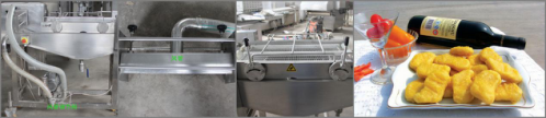 【可以銜接上粉機、上屑機、成型機,油炸機等設(shè)備,從而實現(xiàn)連續(xù)性生產(chǎn);