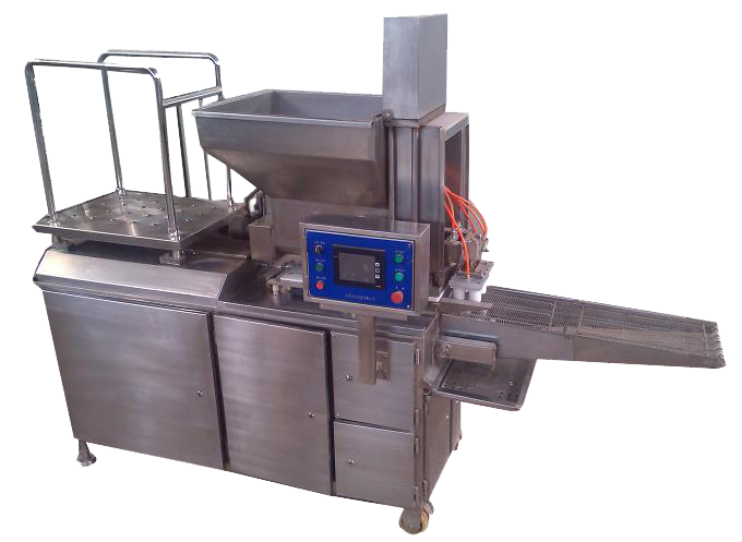 全自動(dòng)肉排成型機(jī)將混合好的原料通過螺桿送料到料箱,通過模板可以加工成卡通形、魚形、數(shù)字形、三角形、長(zhǎng)方形、圓形、心形及特殊形狀的產(chǎn)品,自動(dòng)完成原料的充填,成型、輸出等工序。成形模板更換方便產(chǎn)量高,質(zhì)量穩(wěn)定。牛排成型機(jī)與上粉機(jī)、上漿機(jī)、上面包屑機(jī)、油炸機(jī)、蒸煮機(jī)、速凍機(jī)、包裝機(jī)連成熟食全自動(dòng)生產(chǎn)線,生產(chǎn)漢堡肉餅、雞塊、雞柳、魚排.牛排等產(chǎn)品。雞排成型機(jī)與烘烤箱組裝成生產(chǎn)線做寵物食品。