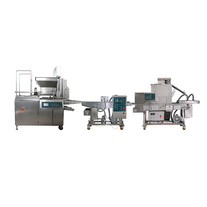 土豆餅生產(chǎn)線把混合好的原料經(jīng)過成型,上漿,上康,油炸,速凍等工藝做出不同厚度不同規(guī)格的土豆餅。模具可以生產(chǎn)不同形狀的產(chǎn)品(如三角形,橢圓形,卡通雞塊形狀,不規(guī)則形狀)通過模具更換產(chǎn)品。土豆餅生產(chǎn)線適用于肉類、水產(chǎn)、蔬菜、奶酪以及它們混合料。土豆餅生產(chǎn)線的需要配置前處理設(shè)備和后處理設(shè)備:絞肉,混合,油炸包裝等設(shè)備,油炸土豆餅生產(chǎn)線與這些配套設(shè)備組成一條完整的快餐調(diào)理生產(chǎn)線。